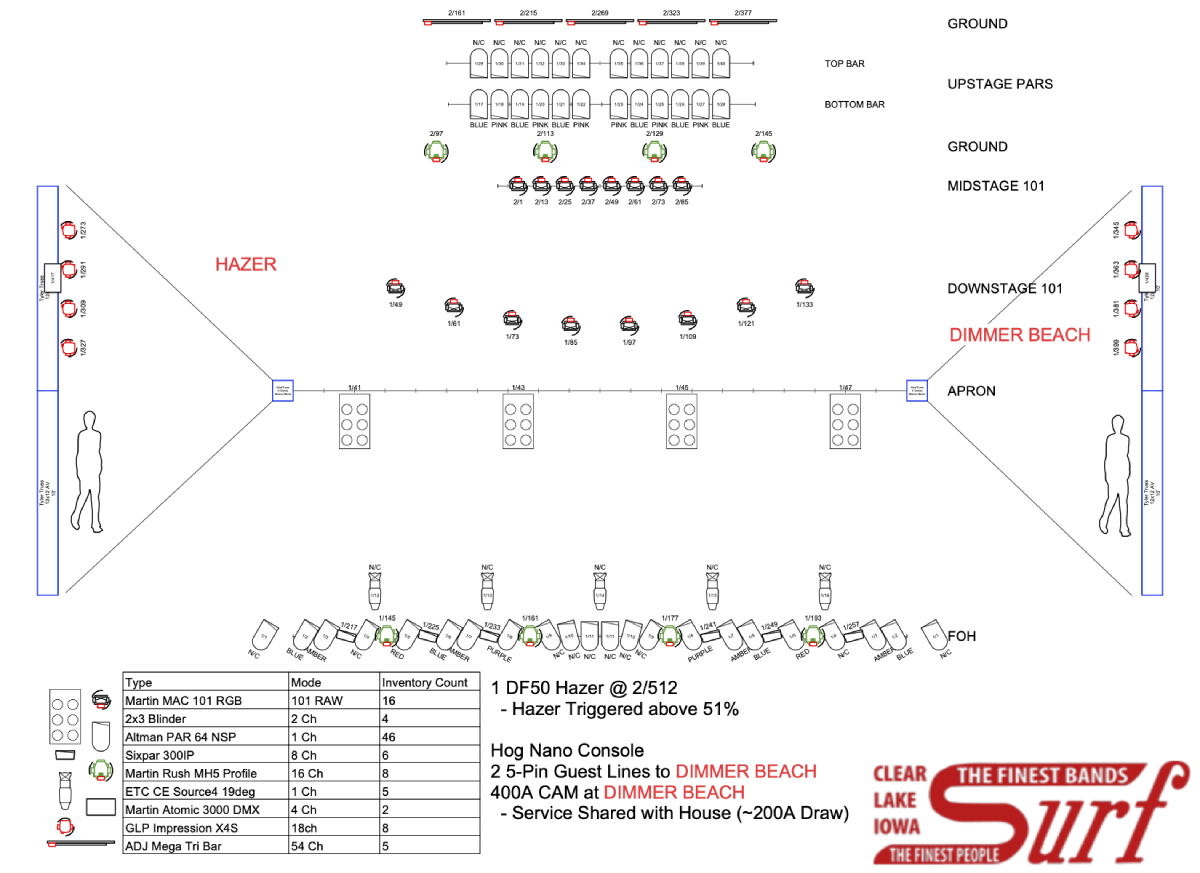 Additional backline equipment is available if needed and cleared through Surf Ballroom management. Please ask for a separate list of backline equipment if it is required.