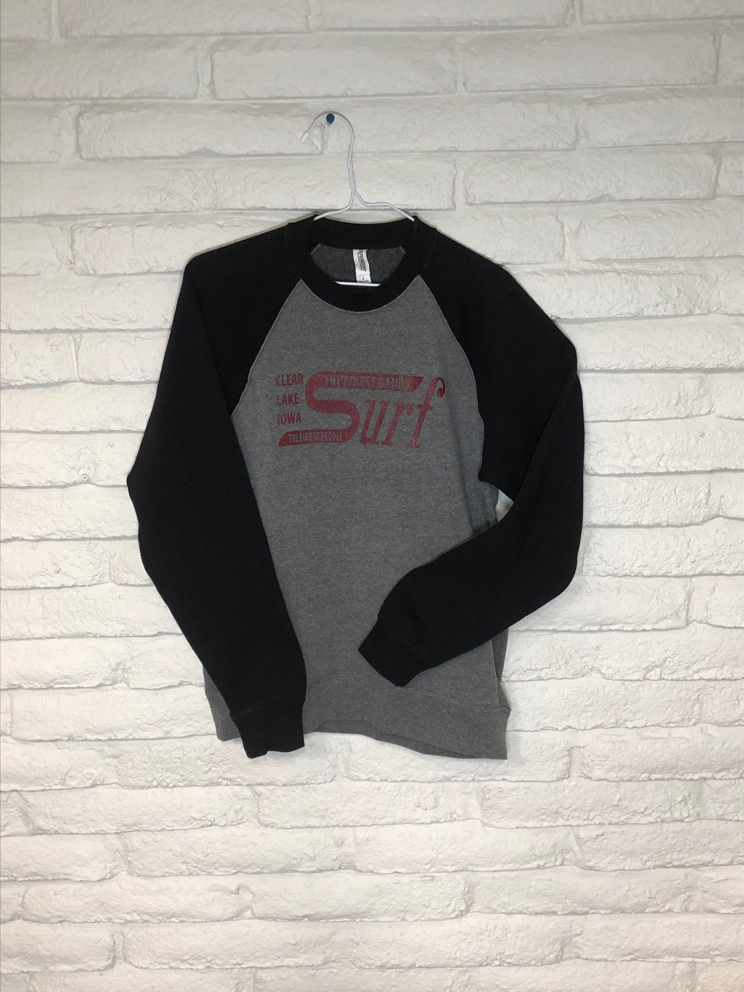 Soft crewneck sweatshirt features the Surf’s retro logo, dating back to 1933 when the venue first opened.