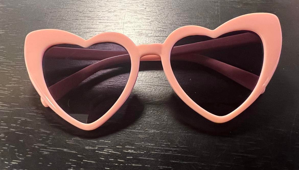 Playful heart-shaped retro glasses inspired by classic Surf Ballroom style. Perfect for photos, parties, and souvenirs.