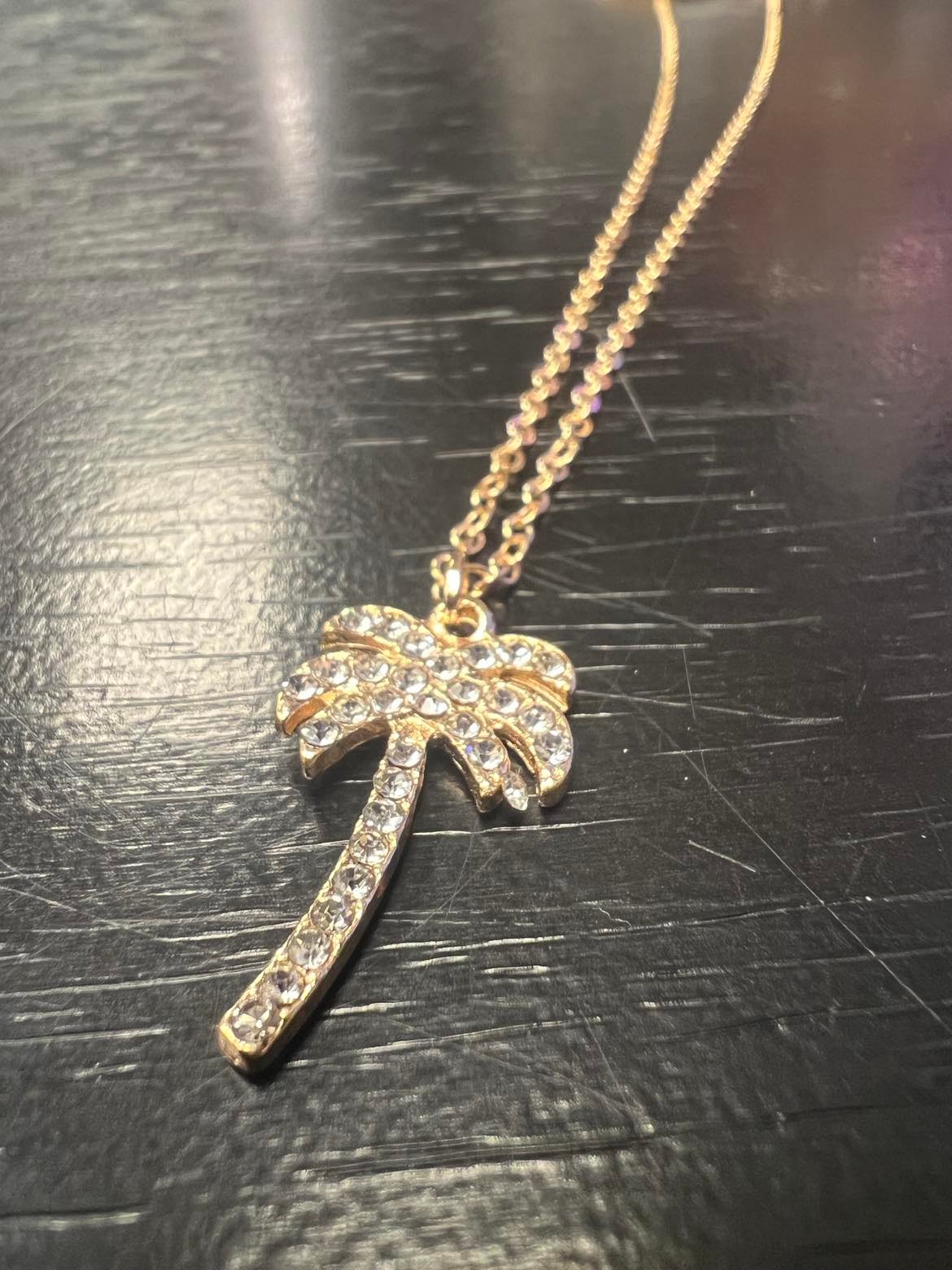 Gold Jeweled Palm Tree Necklace