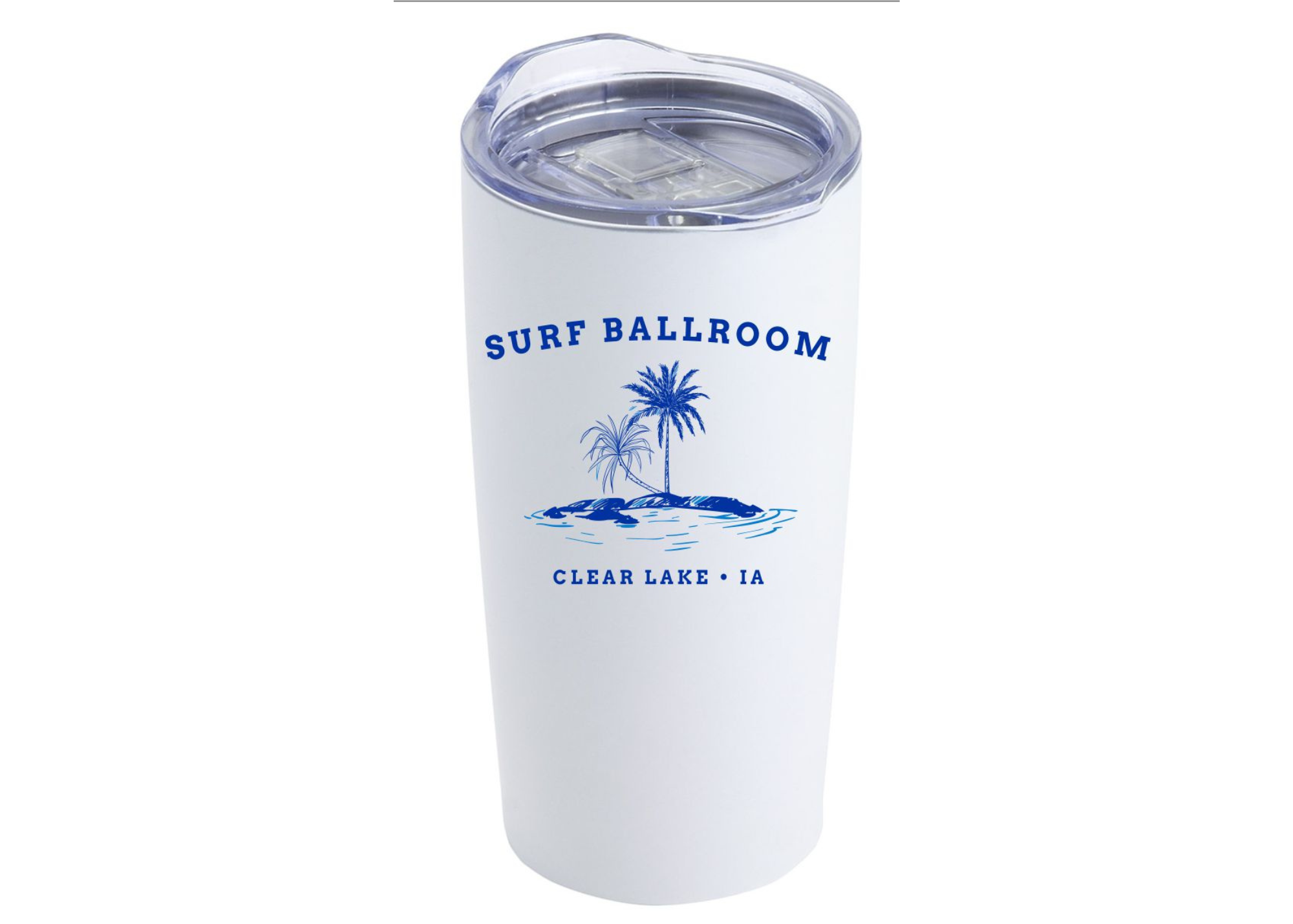White tumbler, Blue Logo and Clear Lid